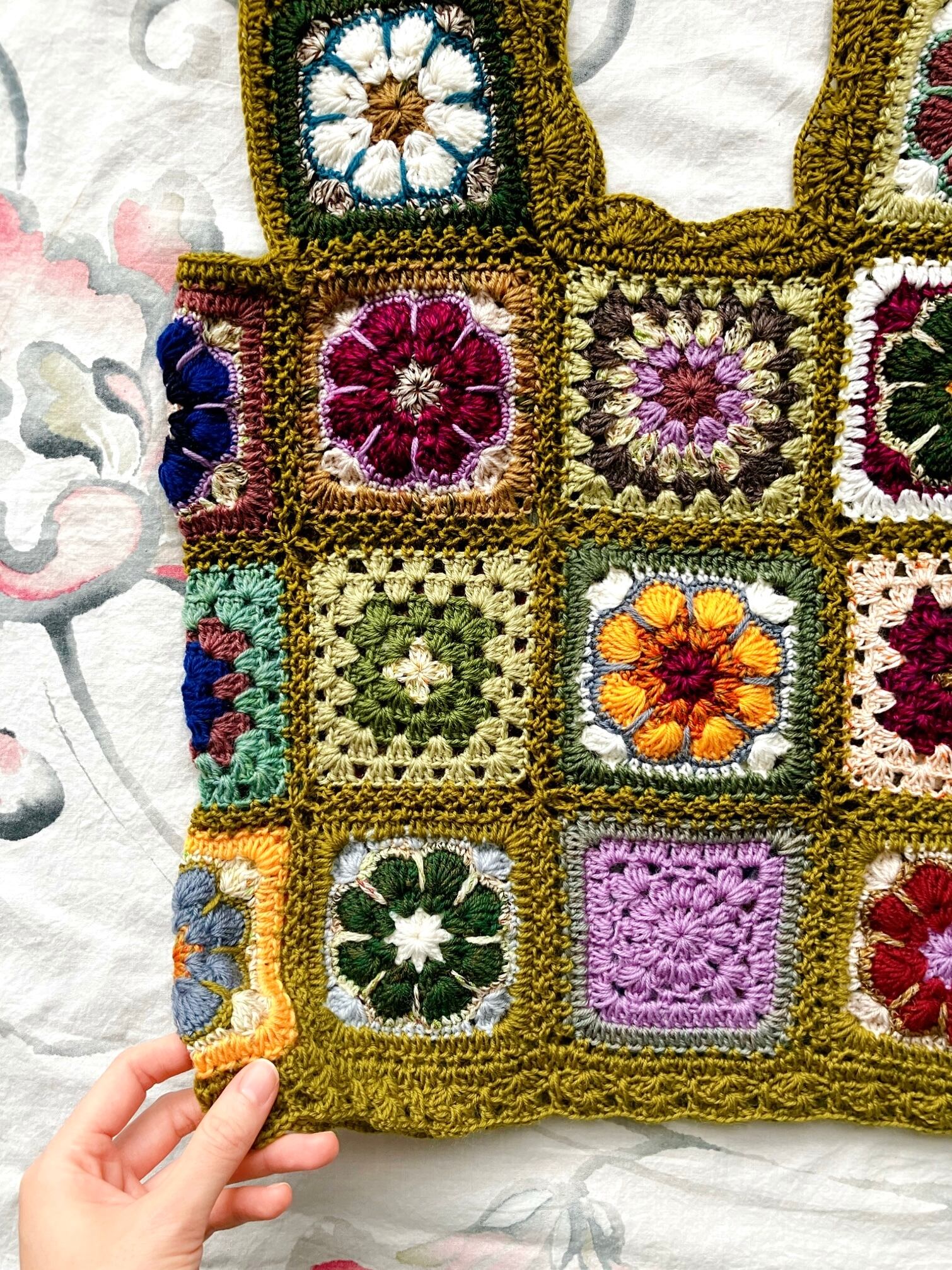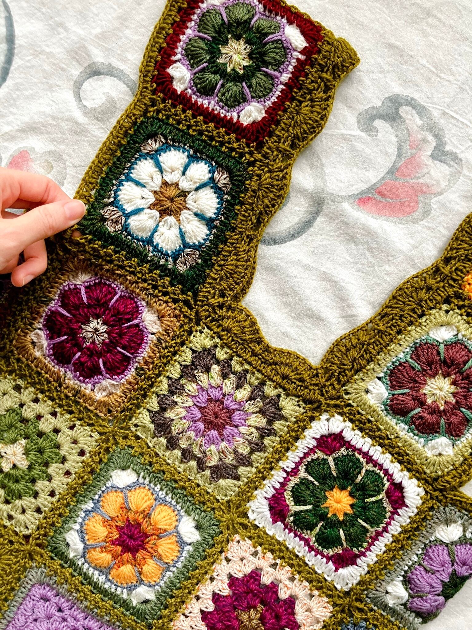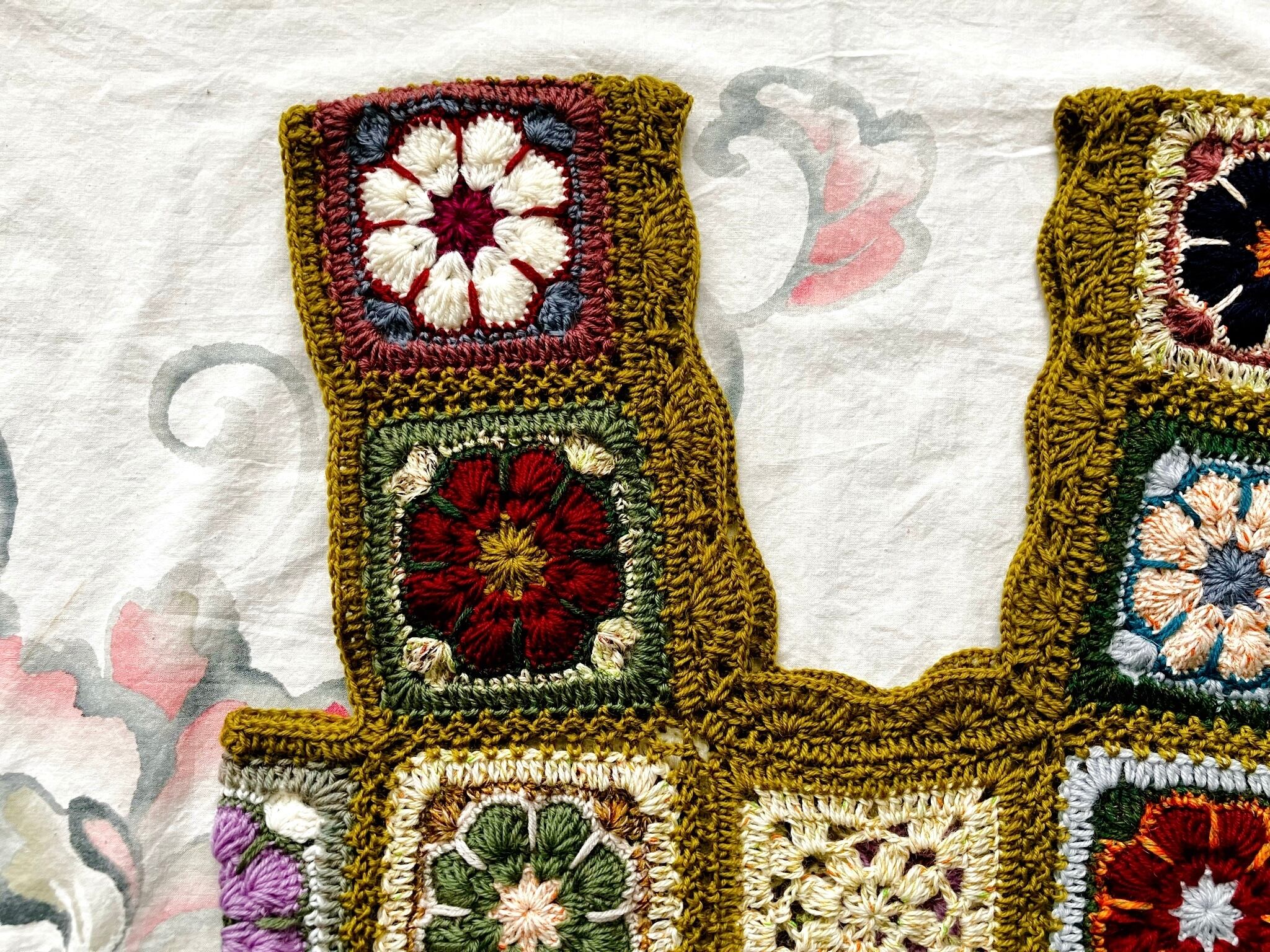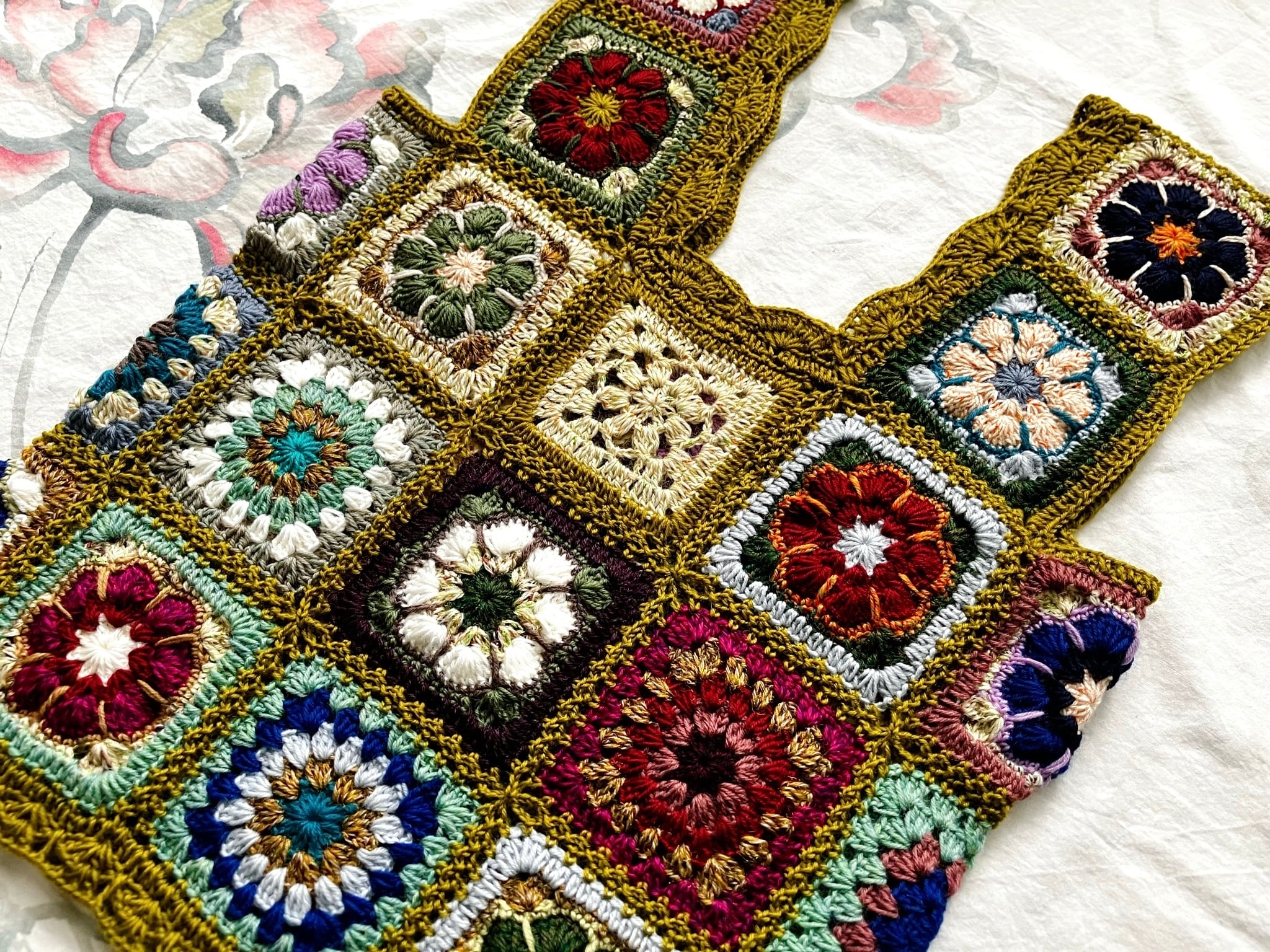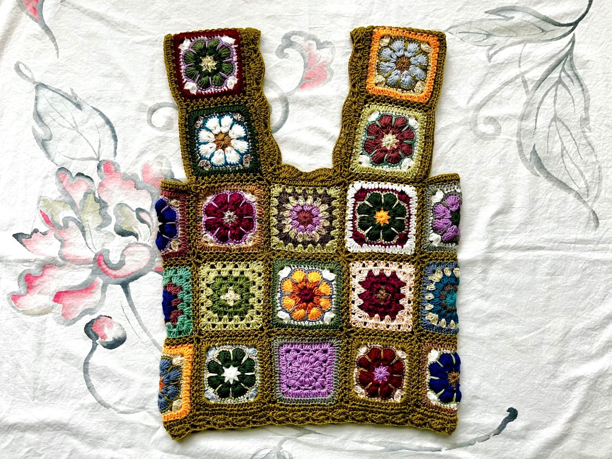 【t様order】手編み花柄モチーフビスチェ"olive"