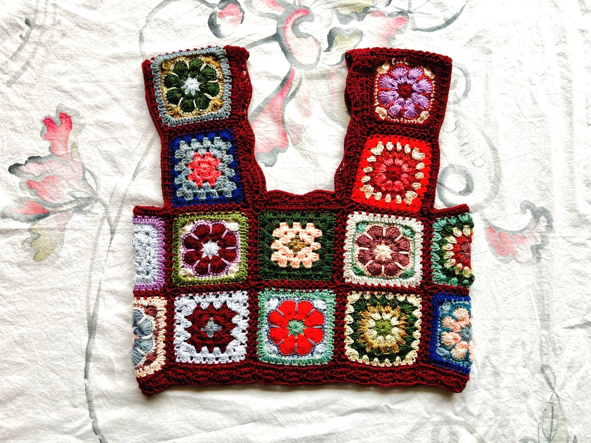 【送料込み】手編み花柄モチーフビスチェ"burgundy" バーガンディー